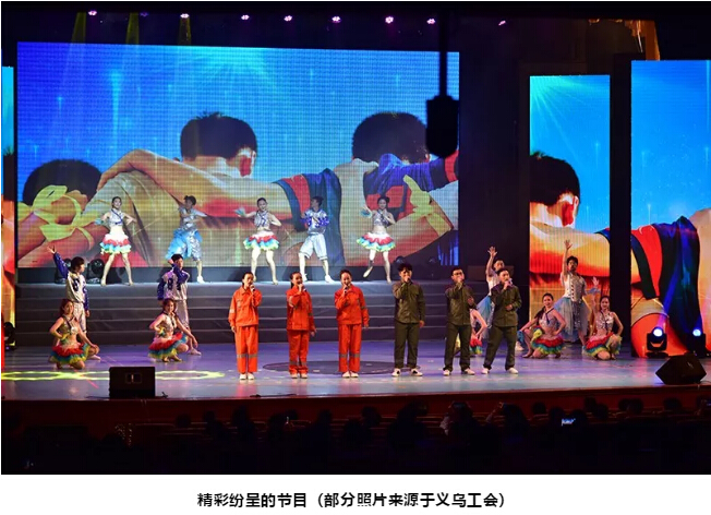 當晚的晚會(huì )現場(chǎng)可真是人山人海,義烏的一線(xiàn)勞動(dòng)者代表都參與到這個(gè)屬于“勞動(dòng)者”的晚會(huì )中,晚會(huì )在歌舞《我們的新時(shí)代》中拉開(kāi)序幕,配樂(lè )詩(shī)朗誦、舞蹈、歌曲、小品、雜技紛紛上臺表演。