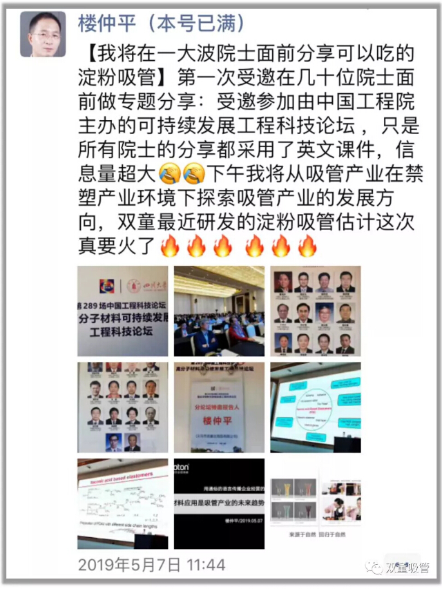 樓仲平受邀中國工程院科技論壇分享生物質(zhì)高分子材料產(chǎn)業(yè)應用報告:可以吃的淀粉吸管受空前關(guān)注!
