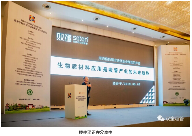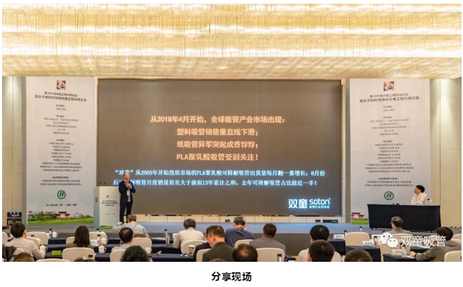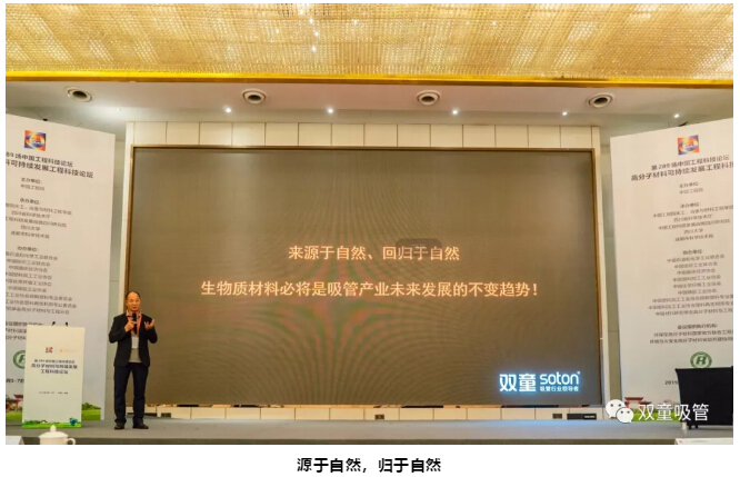 在這樣“談笑有鴻儒,往來(lái)無(wú)白丁”的重要場(chǎng)合,所有院士的分享都采用了英文課件,信息量超大。作為受邀分享嘉賓之一,“雙童”樓仲平也從吸管產(chǎn)業(yè)角度出發(fā)分析在禁塑大趨勢下吸管行業(yè)的發(fā)展方向,為大家帶來(lái)了《生物降解材料應用是吸管產(chǎn)業(yè)的未來(lái)發(fā)展趨勢》主題分享!