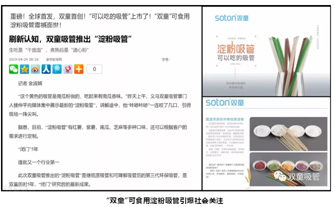 今年4月,歷經(jīng)三年潛心研發(fā),“雙童”可食用淀粉吸管震撼面世,突破了上述局限和問(wèn)題的同時(shí),還對環(huán)境十分友好,完全無(wú)污染!