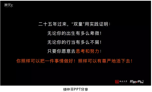 因此,樓仲平引導企業(yè)主們:如果你的企業(yè)還很小、很卑微,一定不要對自己失去信心,要理解商業(yè)的積累。無(wú)論你的行業(yè)有多小,只要你意愿思考和努力,努力代表認真,但前提在于思考。從各個(gè)角度去思考,認真的去履行,是可以改變命運的,改變任何所謂“不好”的產(chǎn)業(yè),所謂的“不好”并不存在?!白鍪裁础辈⒉恢匾?,重要的是“怎么做”!