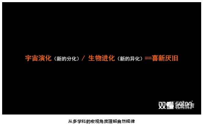 認知創(chuàng )新,需要創(chuàng )業(yè)者打開(kāi)眼界,多去學(xué)習那些看似“無(wú)用”的知識,運用天文學(xué)、生物學(xué)、物理學(xué)的宏觀(guān)角度,理解在“自然規律”的演繹和進(jìn)化。