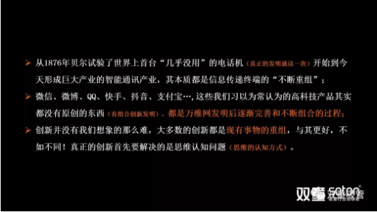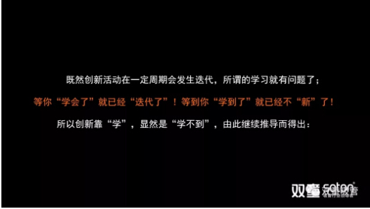 樓仲平先假設了“創(chuàng )新是永遠完成不了的任務(wù)”這個(gè)命題,在后續分享中加以證明今天分享的主軸。因為再復雜的管理,也是建立在為數不多的幾條基本原則上,理解復雜現象背后的原理遠比其載體(“雙童”的案例)在驗證過(guò)程的實(shí)踐來(lái)得重要。
