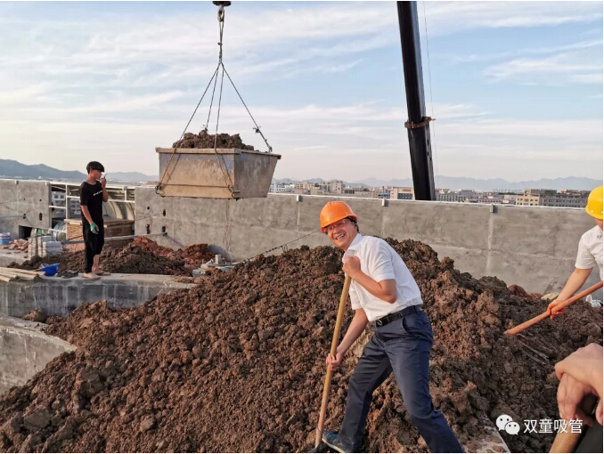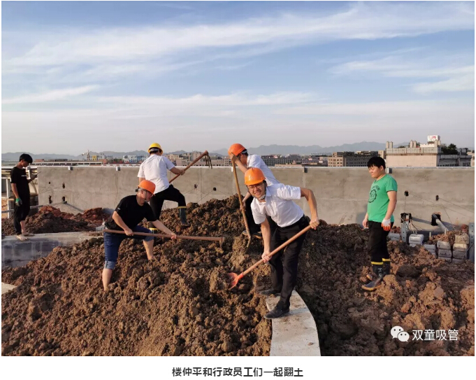 課程直播結束后,樓仲平再次來(lái)到新廠(chǎng)房工地進(jìn)行巡查。在看到新廠(chǎng)房屋頂花園的土方堆的太高,容易產(chǎn)生安全隱患時(shí),樓仲平馬上召集了部分行政人員應急,大家一起拿起鏟子開(kāi)始鏟土,及時(shí)解決土方過(guò)高問(wèn)題??磥?lái),樓大大真是快變成包工頭啦!
