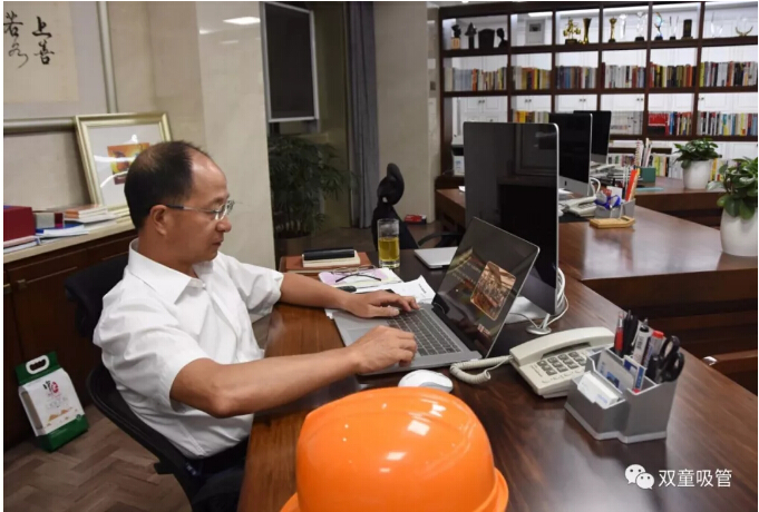 現如今,“雙童”二期智能化工廠(chǎng)雄姿初現,進(jìn)入熱火朝天的施工裝修階段。新廠(chǎng)房投產(chǎn)在即,樓仲平每天上班后必做的一件事就是來(lái)到新廠(chǎng)房巡查,指導施工。烈日炎炎下,總是能看到樓仲平忙碌的身影,時(shí)而和總經(jīng)理李二橋溝通,時(shí)而穿梭于各個(gè)工地現場(chǎng)查看施工狀況……