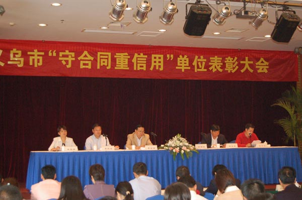 2007年10月18日上午辦公室主任盧程航代表公司參加義烏市“守合同重信用”單位表彰大會(huì ),義烏市政府副市長(cháng)季金甫、義烏市工商局邱增法局長(cháng)、工商局陸立權、洪金有、龔淑娟副局長(cháng)等領(lǐng)導參加了會(huì )議。
