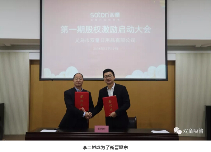 而在2018年12月19日,在“雙童”第一期股權激勵啟動(dòng)大會(huì )上,“雙童”首批12位核心員工正式簽約成為“雙童”的經(jīng)營(yíng)伙伴,我們以股份合伙、業(yè)務(wù)合伙等“合伙激勵”的 方式讓優(yōu)秀人才變?yōu)楹匣锶?,讓員工和組織的目標長(cháng)遠契合、共同生長(cháng)、共享價(jià)值創(chuàng )造的有效延伸!