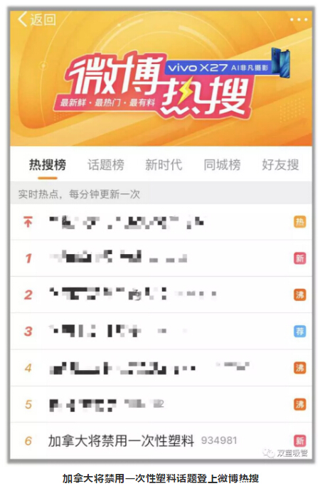 昨天下午,一則#加拿大將禁用一次性塑料#的話(huà)題迅速登上了微博熱搜榜,各大媒體持續報道關(guān)注,引起民眾極大關(guān)注!