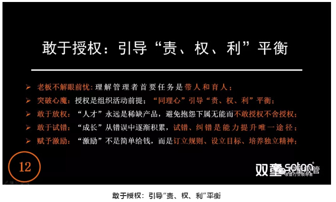其實(shí),樓仲平之所以講這段話(huà)是因為,企業(yè)是一個(gè)運行當中的商業(yè)團體,它的本質(zhì)是建立在“責、權、利”平衡上的。