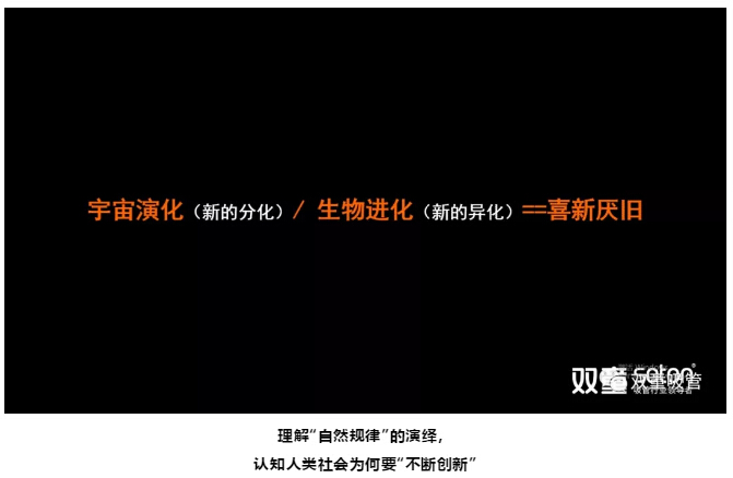 樓仲平繼續分享道:要真正認知“創(chuàng )新”,首先要多去學(xué)習那些看似“無(wú)用”的知識,運用天文學(xué)、生物學(xué)、物理學(xué)的宏觀(guān)角度,理解在“自然規律”的演繹和進(jìn)化,再通過(guò)逐級推理的方式去認知人類(lèi)社會(huì )為什么要“不斷創(chuàng )新”。