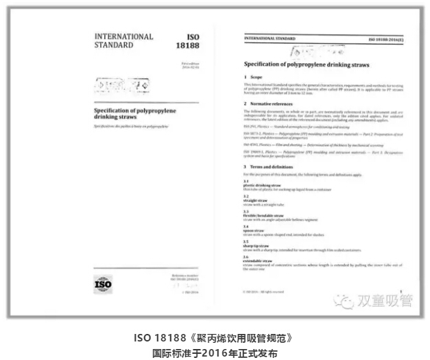 2016年6月27日,“雙童”主導并起草的《聚丙烯飲用吸管規范》ISO國際標準文本發(fā)布,這意味著(zhù)“雙童”的吸管產(chǎn)品走在了世界的最前列。