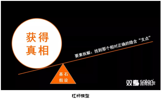 它背后的邏輯其實(shí)很簡(jiǎn)單,即通過(guò)不斷地要素拆解,找到相對正確的“基石假設”,把它作為一個(gè)支點(diǎn),從而撬動(dòng)了思維。