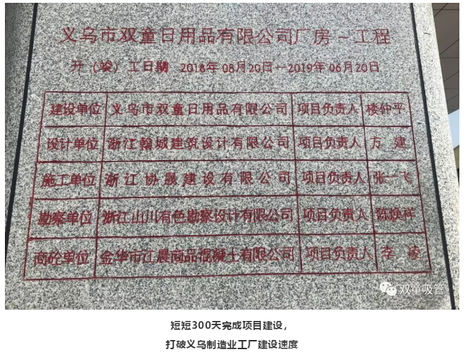2018年8月20日開(kāi)始正式建設,到2019年6月20日預驗收,短短十個(gè)月300天,“雙童”二期智能化工廠(chǎng)完成項目建設,打破義烏制造業(yè)工廠(chǎng)的建設速度!