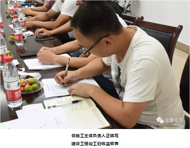 驗收完成后,大家在會(huì )議室開(kāi)展了“雙童”二期智能化工廠(chǎng)的竣工總結會(huì ),對大樓的施工情況、主要工程、質(zhì)量評估等方面進(jìn)行匯報,并現場(chǎng)填寫(xiě)了建設工程竣工驗收監督表。歷經(jīng)300天的建設,“雙童”二期智能化工廠(chǎng)正式竣工交付使用。