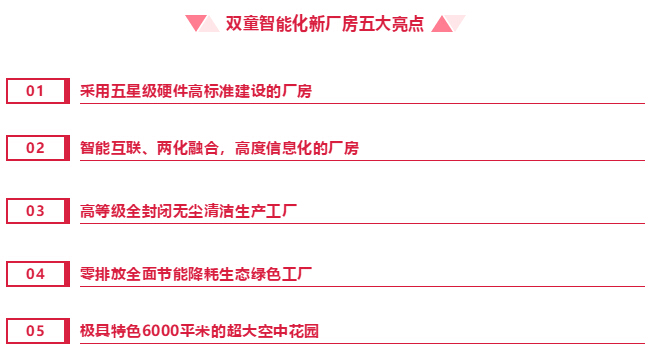 “雙童”智能化工廠(chǎng)按高規格的建筑標準,所有硬件都采用“五星級”標準,硬件標準之高將超乎一般制造業(yè)企業(yè)的想象!