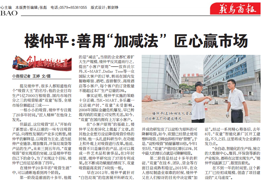 這不,《義烏商報》發(fā)出了《樓仲平:善于“加減法”匠心贏(yíng)市場(chǎng)》的專(zhuān)題報道,一起來(lái)看看吧!