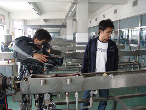 2007年11月10日上午,義烏水利局和《中國水資源報道》領(lǐng)導協(xié)同中央電視臺新聞節目中心系列專(zhuān)題片《命脈》節目組黎亞輝編導來(lái)我公司采訪(fǎng),針對我公司的中水利用系統、雨水收集系統、生產(chǎn)用水循環(huán)利用系統、生產(chǎn)熱水回用系統、純凈水系統等節能用水方面進(jìn)行了采編,并邀請公司樓仲平董事長(cháng)闡述了公司采用節水利用系統的想法和感受。樓總表示這些節水工程其實(shí)并不復雜,也沒(méi)有什么高深莫測的技術(shù)要求,只是人的意識問(wèn)題,只要大家都有節水的意識,實(shí)實(shí)在在去做,對企業(yè)、社會(huì )都會(huì )得到長(cháng)遠利益,呼吁義烏企業(yè)界都能朝能源利用最大化、節水節能從自身做起。
