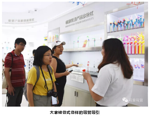 首先,在吸管妹妹的帶領(lǐng)下,大家參觀(guān)了中國吸管博物館。一看到這些品種多樣,形態(tài)各異的吸管,大家一下子就被吸引住了,不禁開(kāi)啟了瘋狂拍照模式!