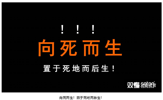 在這次變革中,“雙童”第一次破天荒提出了以“死亡”為假設命題,引進(jìn)“向死而生,置于死地而后生”的概念讓團隊意識到自己所面對的危機,從而讓員工和組織管理層認知到死亡即將到來(lái)之時(shí),激發(fā)團隊產(chǎn)生強烈危機感,從而實(shí)現對組織管理的及早干預,以此推動(dòng)企業(yè)獲得“生”的能力,獲得組織生命的延伸!