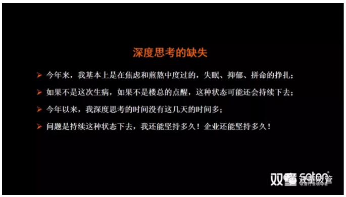 “所以是時(shí)候反省,并下決心打破自己!打破自己的思維慣性,跳出感性思維進(jìn)入理性思考,勇于突破和改變自我,下定決心再次推動(dòng)‘雙童’改革?!?/span>