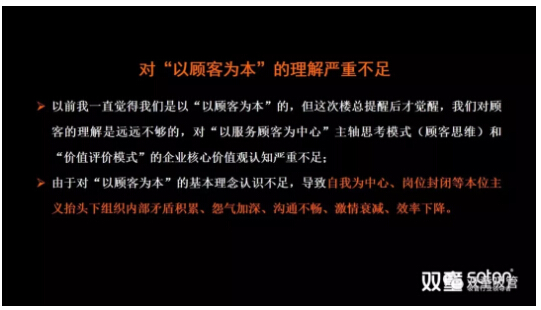 近些年來(lái),“雙童”人沒(méi)有形成“以服務(wù)顧客為中心”的主軸思考模式,對顧客思維的認知嚴重不足。導致以自我為中心、崗位封閉的情況存在,從而使得組織內部矛盾越積越深。