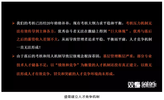 “雙童”20多年以來(lái)落后的考核和用人機制,導致了考核壓力機制無(wú)法有效傳導到主體各方,不擔當、不作為的的現象極其普遍,因而亟需建立以“績(jì)效和競爭”為衡量的人才機制。