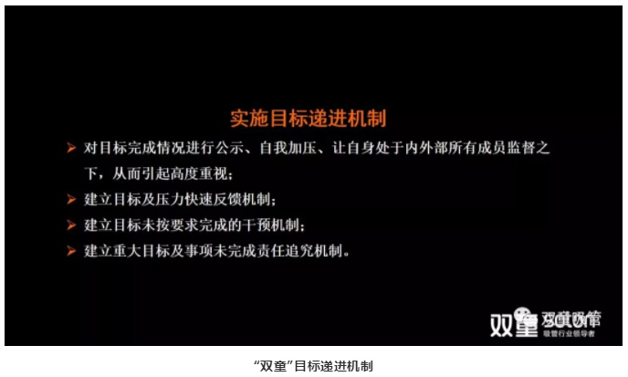 目前,公司目標完成情況沒(méi)有公示,大部分人對目標進(jìn)度都不了解。后續“雙童”也將建立明確的目標未完成干預機制和健全的重大目標事項未完成責任追究機制,將責任追究到人,壓力分攤到人,從而實(shí)現反向激勵,讓所有成員發(fā)揮最大的能力實(shí)現目標。