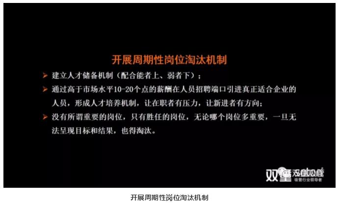 打破層級思想,鼓勵創(chuàng )新(新思想、新技術(shù)、新動(dòng)能)和突破(敢于突破自己、敢于挑戰權威、敢于打破常態(tài)),不惜代價(jià)引進(jìn)優(yōu)秀人才,建立人才梯隊,形成人才競爭; 打破績(jì)效平衡:放大績(jì)效桿杠,通過(guò)“假設和目標設定”來(lái)衡量杠杠尺度,形成能者上,弱者下的競爭機制;