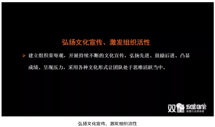 建立組織榮辱觀(guān),開(kāi)展持續不斷的文化宣傳,弘揚先進(jìn)、鼓勵后進(jìn)、凸顯成績(jì)、呈現壓力,采用各種文化形式讓團隊處于思維活躍當中。