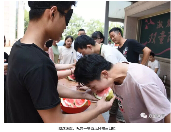 接下來(lái),直面觀(guān)看一下兩兩PK,哪組最快吃完指定西瓜,即為勝利。目測一下,大家覺(jué)得哪組獲勝了呢?