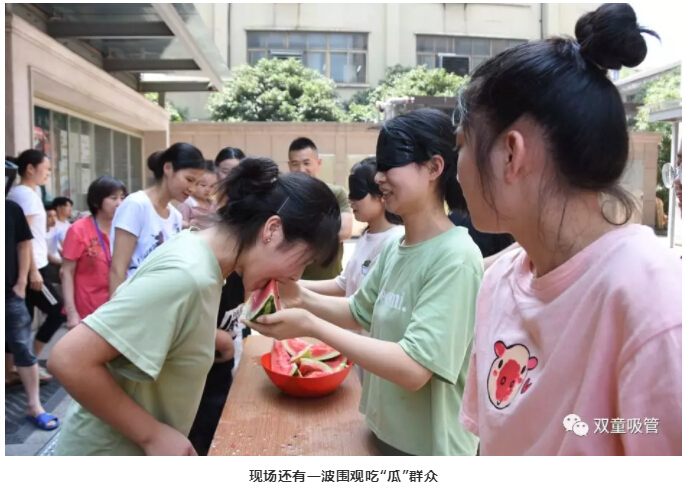 游戲的第一項就是“蒙眼吃西瓜”!聽(tīng)到吃,大家的眼睛都亮了,笑說(shuō):吃西瓜,太簡(jiǎn)單了!真的像大家說(shuō)的很簡(jiǎn)單嗎?快跟著(zhù)妞來(lái)看看吧!