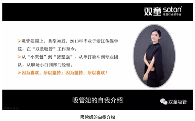 在樓仲平的傾力培養和吸管妞自身的不斷努力下,吸管妞逐漸積累了大量企業(yè)文化傳播和自媒體運營(yíng)的經(jīng)驗,“雙童”獨特的企業(yè)文化也越來(lái)越被外界認可。當家人樓仲平開(kāi)始逐步放手,鼓勵吸管妞自己去招聘和帶團隊,培養吸管妞的團隊意識和管理能力。