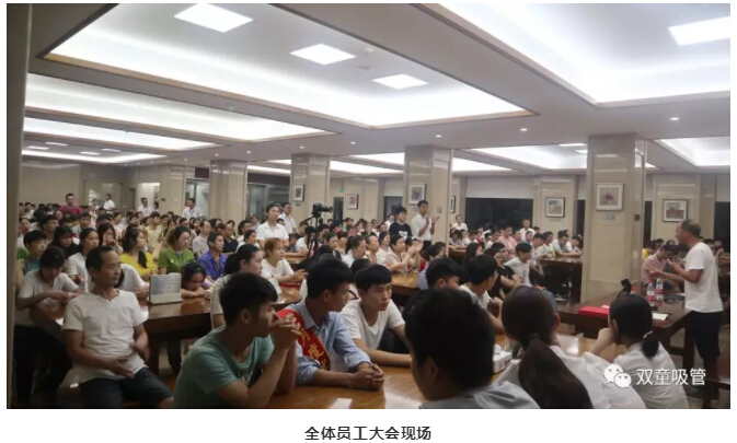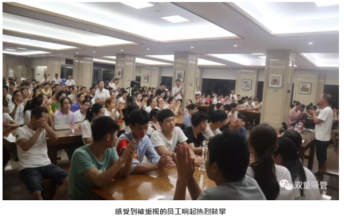 從8月16日開(kāi)始,“雙童”持續推動(dòng)企業(yè)重大改革,強烈喚醒了員工們的危機意識!8月20日晚,"雙童"停下所有生產(chǎn)線(xiàn)機器設備,緊急召開(kāi)員工大會(huì )!原來(lái),此次員工大會(huì )以改革為主題,將改革工作深入到所有員工,讓每一位員工得以理解和轉變!