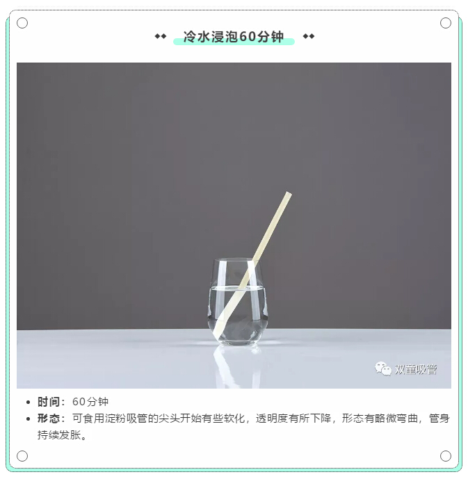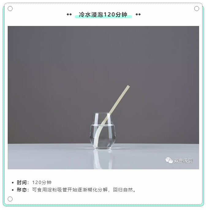在2小時(shí)之后,可食用淀粉吸管會(huì )逐漸糊化分解,神奇消失,源于自然,歸于自然!
