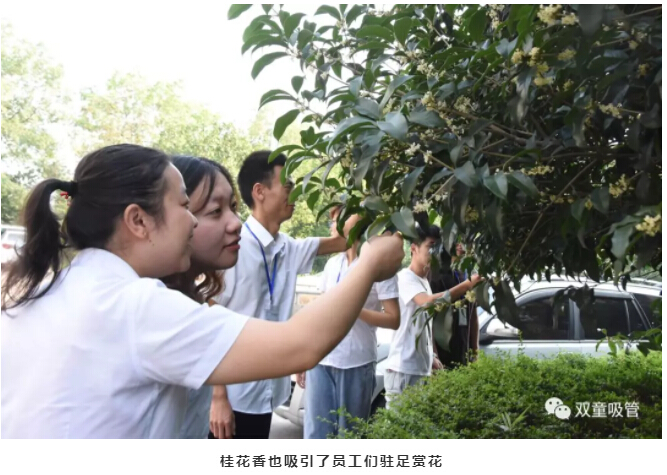 “不是人間種,移從月中來(lái)。廣寒香一點(diǎn),吹得滿(mǎn)山開(kāi)?!?詩(shī)人楊萬(wàn)里這樣贊頌桂花。而在“雙童”,一到秋季,最能夠引人注意的就是盛開(kāi)在廠(chǎng)區的幾十棵桂花樹(shù)啦!在大門(mén)邊、行政樓前、九樓空中花園內……所有的桂花樹(shù)似乎都約好了一般,全部盛開(kāi)了!