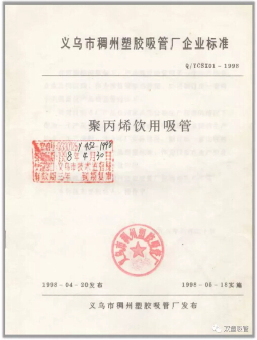 義烏市稠州塑膠吸管廠(chǎng)起草的企業(yè)標準正式發(fā)布