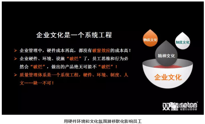通過(guò)對環(huán)境和制度的不斷改善,我們認知到:質(zhì)量的改善僅有硬件和制度是不夠的,更需要不斷提升每一位員工的素養,形成高度統一的群體意識 。自此,“雙童”質(zhì)量文化開(kāi)始逐步完善,通過(guò)硬件環(huán)境和文化氛圍潛移默化地影響員工,用精細化管理的方式改變員工的意識和習慣。