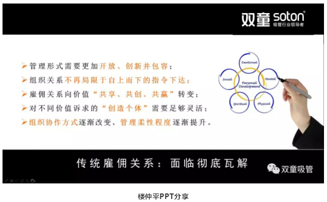 這些年來(lái),“雙童”樓仲平一直十分重視團隊管理,敢于授權,用科學(xué)理性的方式引導員工職業(yè)化轉變,推動(dòng)企業(yè)規范化、制度化、流程化和標準化。