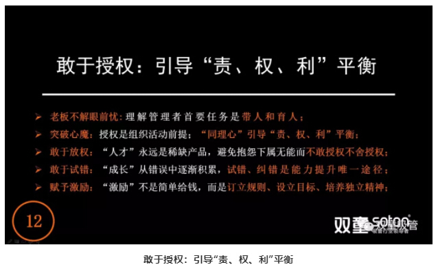 管理不是管控、教條和賦予,而是激發(fā)和釋放每個(gè)人的潛力,通過(guò)這種方式來(lái)幫助員工成長(cháng)、激發(fā)其創(chuàng )造,在共同追求中形成一致的價(jià)值和理念認同。
