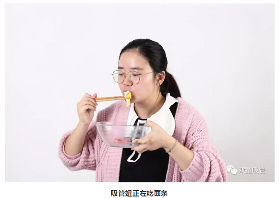 除此之外,可食用淀粉吸管還有一個(gè)神奇之處就是——可以煮著(zhù)吃!瞧,吸管妞正在親身給大家試吃呢!