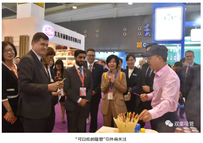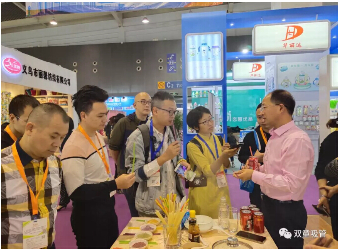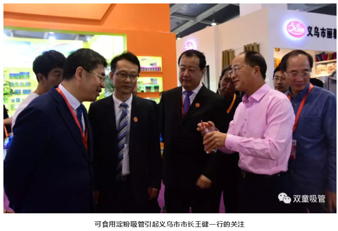 在義博會(huì )上,“雙童”可食用淀粉吸管成為了展會(huì )“大明星”,不僅引起了義烏市市長(cháng)王健一行和外商客人的關(guān)注,而且也吸引了大批新老客戶(hù)駐足洽談。