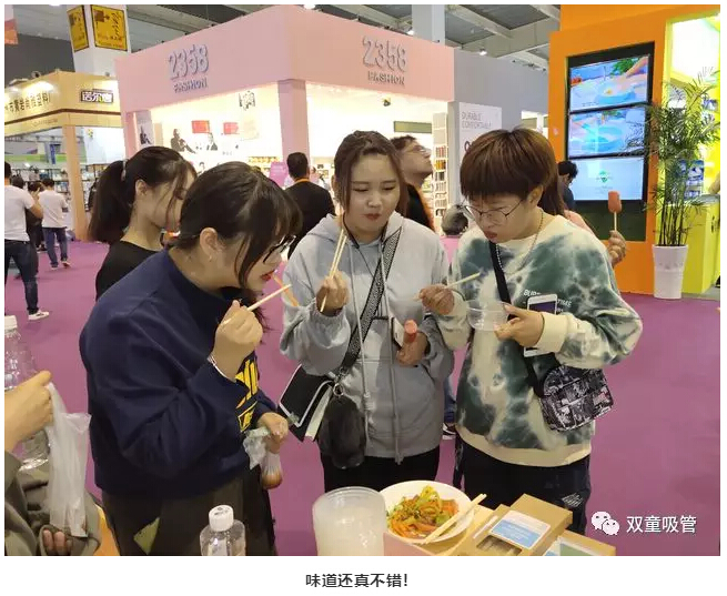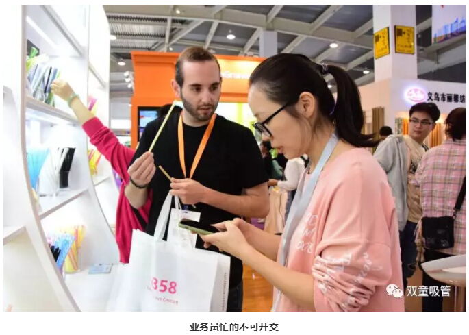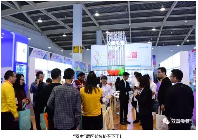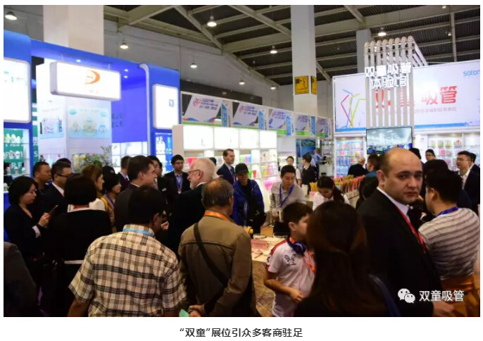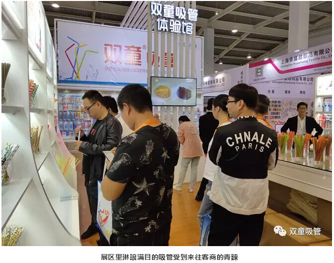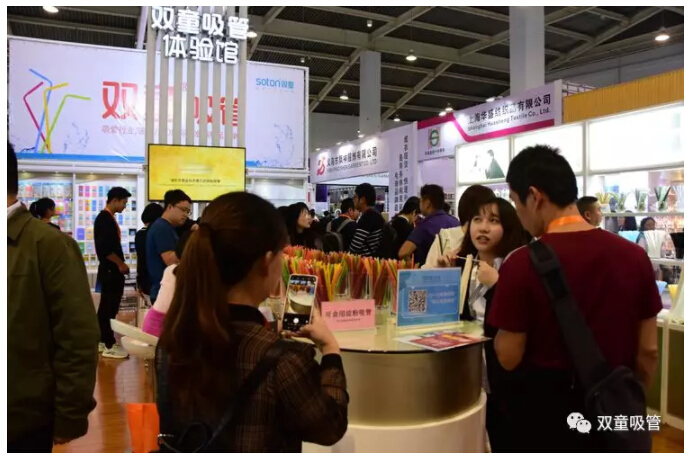 “雙童”可食用淀粉吸管在義博會(huì )上閃亮登場(chǎng),成為了展會(huì )上的“大明星”,一瞬間就勾起了來(lái)往客商滿(mǎn)滿(mǎn)的好奇心,紛紛駐足洽談,“雙童”展位都快擠“爆”了!