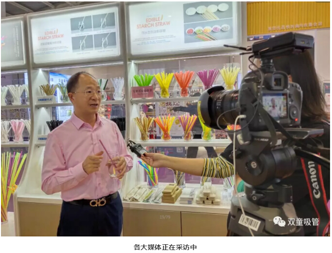 在此次義博會(huì )上,“雙童”可食用淀粉吸管不僅引起來(lái)往客商關(guān)注,還引來(lái)眾多媒體的采訪(fǎng)報道!