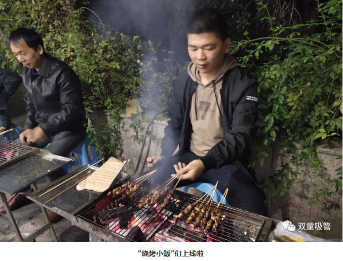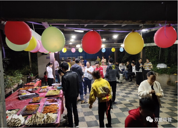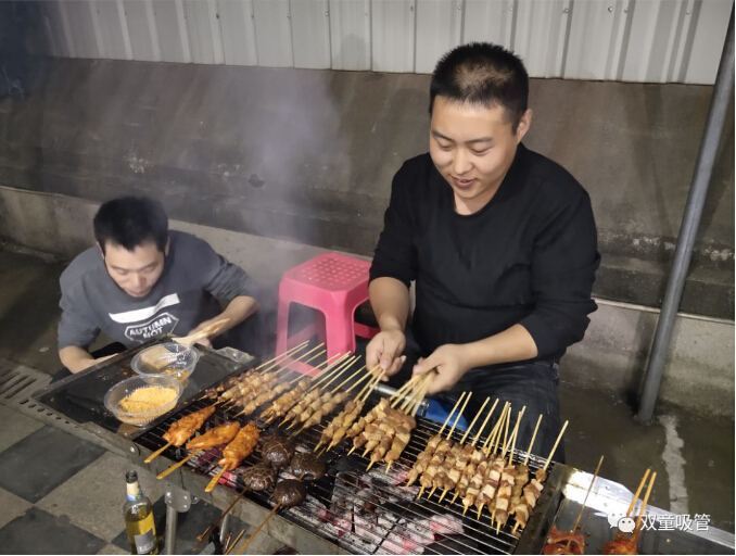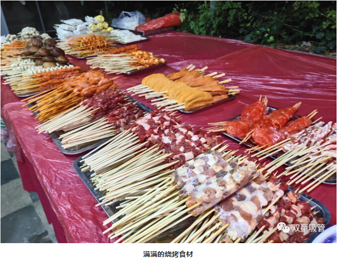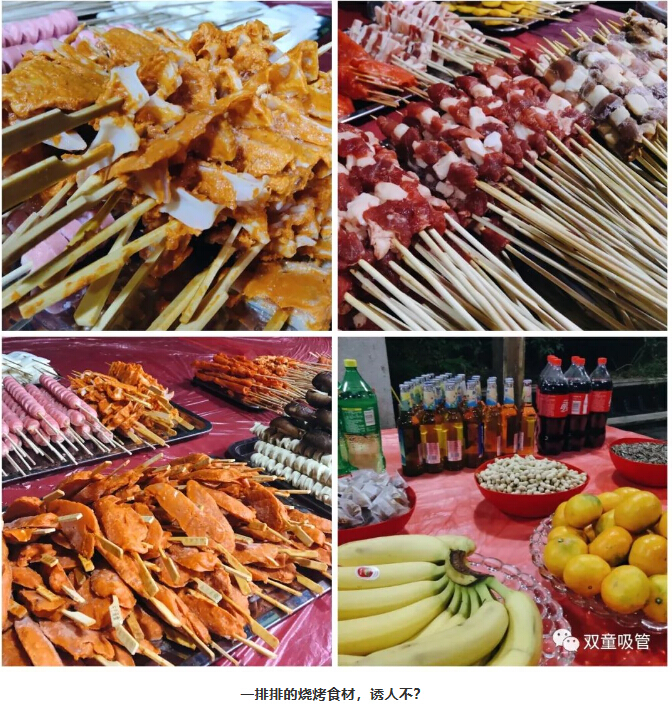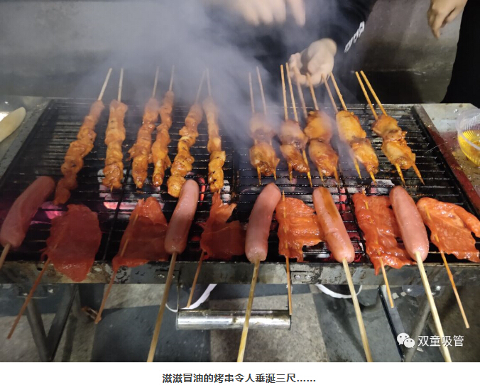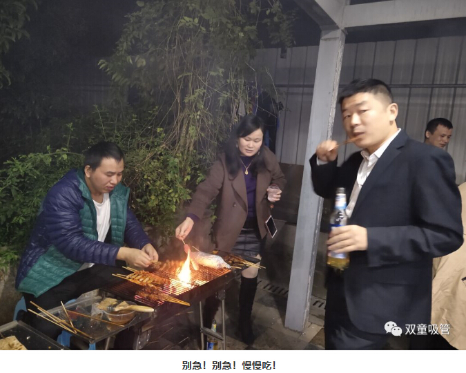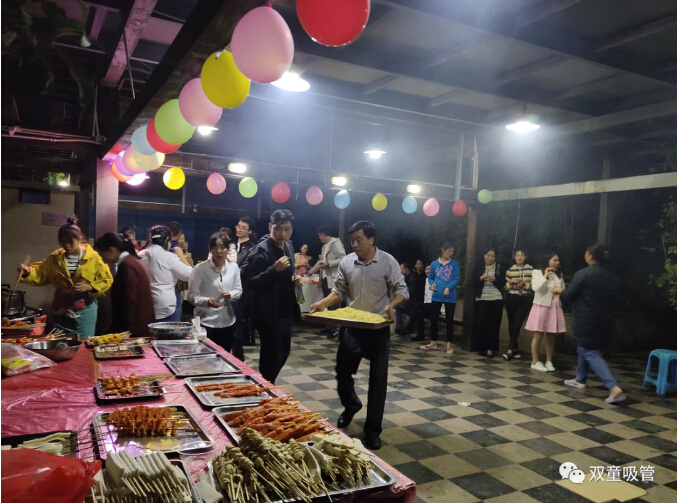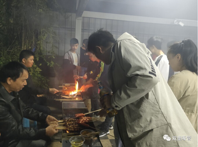 大家圍坐在烤爐前爭當“燒烤小販”,為壽星們進(jìn)行服務(wù)。大伙手上的肉串還沒(méi)吃完,“燒烤小販”們已經(jīng)笑瞇瞇地把新烤好的肉串奉上了,吃都來(lái)不及,這是什么節奏!