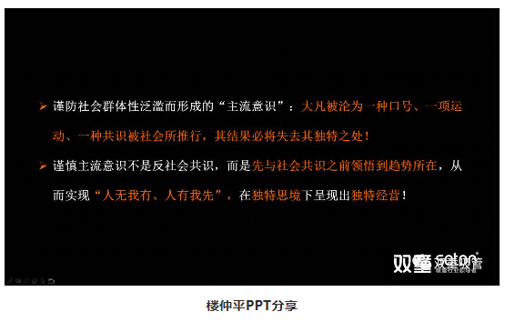 但是,我們一定要理解,謹慎主流意識并不是反社會(huì )共識,而是先于社會(huì )共識之前領(lǐng)悟到趨勢所在,極早作出改變,從而實(shí)現“人無(wú)我有、人有我先”,在獨特思境下呈現出獨特經(jīng)營(yíng),創(chuàng )造出獨特的價(jià)值!