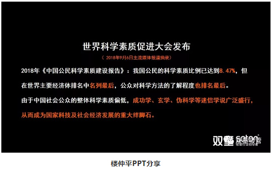 接著(zhù),樓仲平引述了2018年《中國公民科學(xué)素質(zhì)建設報告》,讓大家了解到目前中國公眾對科學(xué)認知所處的階段: