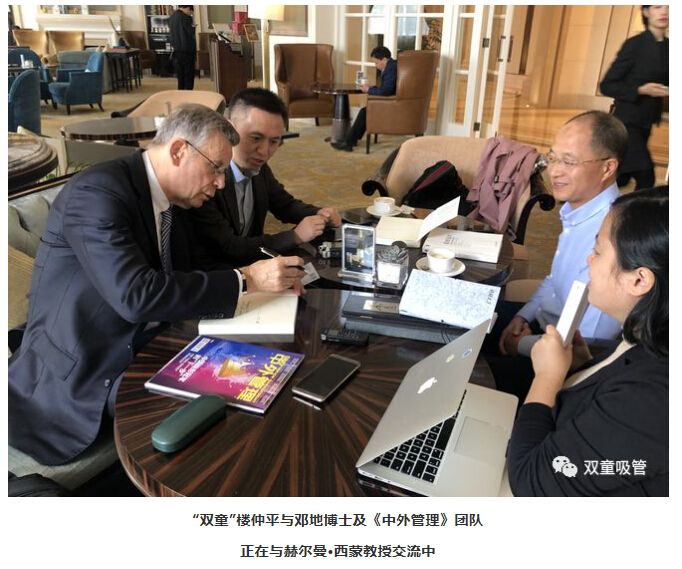 近日,“雙童”樓仲平作為中國隱形冠軍企業(yè)代表受邀和中國隱形冠軍研究第一人的鄧地博士及《中外管理》團隊一起前往上海采訪(fǎng)“隱形冠軍”之父赫爾曼·西蒙教授。