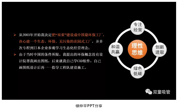 那么,早在十多年前,整個(gè)社會(huì )環(huán)境都沒(méi)有倡導節能環(huán)保理念的當時(shí),樓仲平為何會(huì )選擇帶領(lǐng)企業(yè)走這條發(fā)展道路呢?下面,吸管妞就借樓仲平在浙江大學(xué)授課時(shí)的一段視頻,揭秘其中的奧秘!