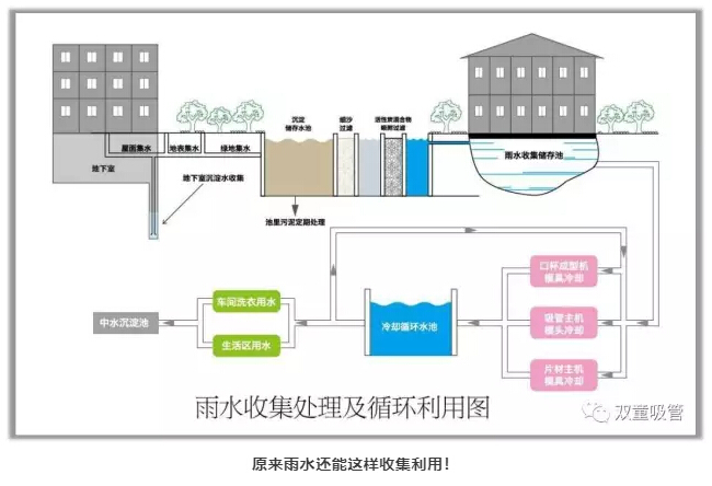 “雙童”廠(chǎng)區內有200多個(gè)“雨水收集坑”,和蓄水池有序連接,并延伸進(jìn)廠(chǎng)區的眾多角落。這些雨水在經(jīng)過(guò)過(guò)濾后可以作為消防用水等。雨水收集系統每年為“雙童”收集了10萬(wàn)噸水,基本滿(mǎn)足了“雙童”總用水量的80%,每年為企業(yè)省下七八十萬(wàn)元!