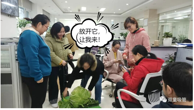 進(jìn)入辦公室以后,依舊沒(méi)有被“放過(guò)”!大家看到如此大的白菜,都伸出手來(lái),想要沾沾“大”氣!